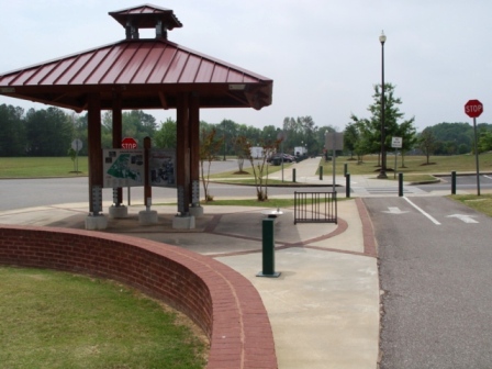 Jacksonville State University represents the only section of the CLT that deviates from the original railroad bed. Nevertheless, it features this great rest stop that is complete with trail information, maps, shelter and a drinking fountain.