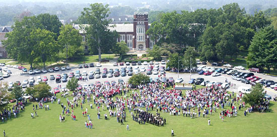 ![]() Just a portion of the more than 2500 who attended Friday's service are shown arriving early for the event which was held in front of Bibb Graves. ![]() Those who led the service included JSU President Bill Meehan; Mayor Jerry Smith; Mr. L.Z. Johnson, director, Center for Domestic Preparedness; Rev. Gary Brittain, campus minister, Baptist Campus Ministry; Ms. Miranda Killingsworth, SGA president; Ms. Honorata Sulila, president, International Student Organization; Dr. Franklin King, director, Distance Education (representing off-campus students); Rev. Lanier Nail, campus minister, Chi Alpha Christian Fellowship; Col. Herschel May, professor of military science, ROTC; Rev. Penny Ford, campus minister, Wesley Foundation; and the Rev. Sherry Travis, rector, St. Luke's Episcopal Church. ![]() An unidentified Jacksonville resident shows his patriotism by displaying the American flag. ![]() Area law enforcement officers enrolled in the Northeast Alabama Police Academy at JSU attended the solemn occasion. ![]() Jacksonville Mayor Jerry Smith, professor of political science at JSU, delivers the opening remarks. |