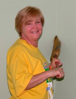 Linda Pinson of the computer center sweeps a corner. (Randy Wilson Photo)