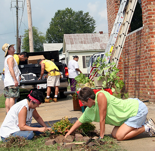 Connie Thompson, from JSU-Gadsden, assisted in landscaping and painting. (Angie Finley Photo)