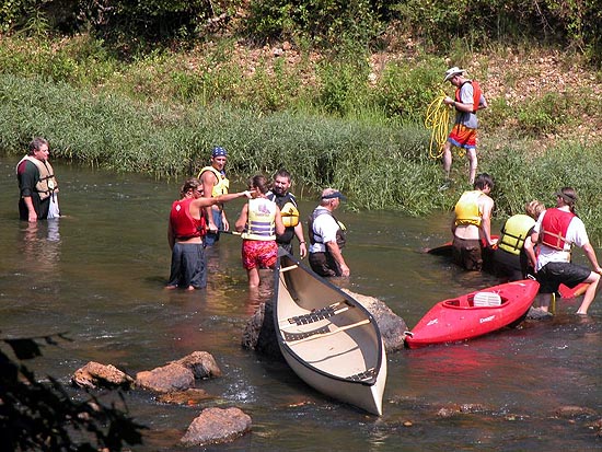 It was a triathalon Saturday for Jacksonville State University's Field School program. Nearly 200 participants turned out for three Field School workshops, showing strong demand for the type of programs offered through the Environmental Policy and Information Center (EPIC). The Essentials of River Safety Paddle Clinic attracted more than 150 paddling enthusiasts ranging from beginner to expert. They gathered along the banks of Terrapin Creek to explore eight learning stations on topics such as “paddle technique, wading in swift water, strainers, and rescue rope toss." The JSU Field School and the American Canoe Association received hundreds of compliments regarding the event. The day maintained a 100% safety record for the paddling participants: not one injury was incurred. Also that day, the Printmaking Workshop attracted 20 artists, some budding and others fully bloomed. They gathered at historic McClellan’s charming Lide Hall Saturday to learn several different printmaking techniques, including those using linoleum block, ropes, and natural materials. A large print displaying their individual work is on exhibit near the EPIC office in Martin Hall. The third workshop was an Archaeology Tour of Calhoun and St. Clair Counties. Ten explorers were guided through the past to study native American history, epic battles, and early southeastern cultures by JSU Archaeologist Dr. Harry Holstein. Those who missed this impressive tour can join Dr. Holstein for his archaeological exploration of Cherokee and DeKalb counties in October.